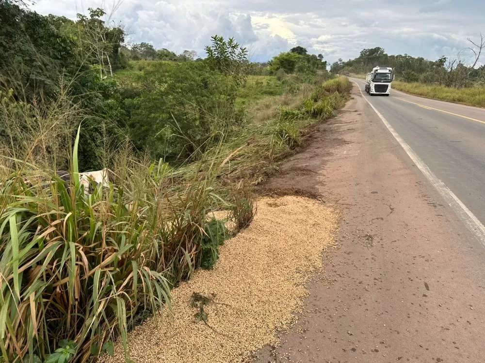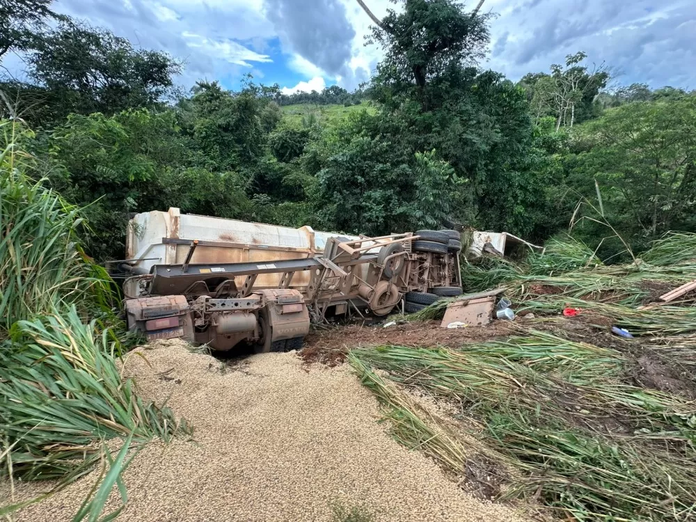 Um acidente impressionante ocorreu na BR-364, próximo ao posto da Polícia Rodoviária Federal (PRF) em Jaru, quando uma carreta bitrem carregada com soja se perdeu em uma curva e caiu em uma ribanceira. O incidente aconteceu enquanto o veículo seguia sentido Porto Velho.