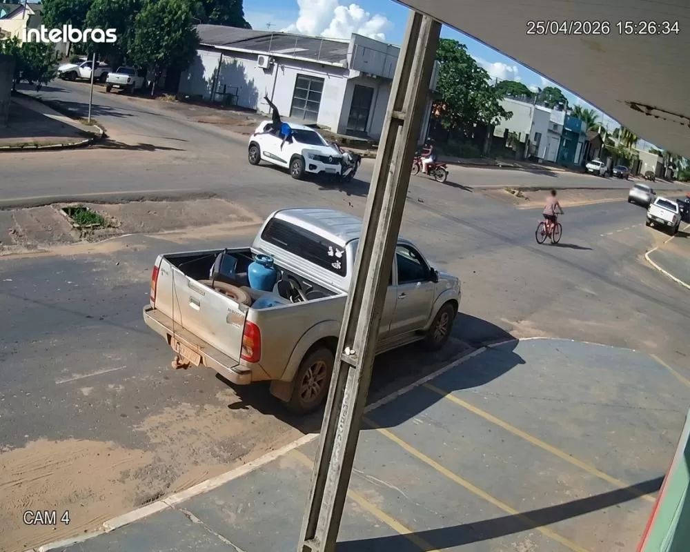 Avançou Preferencial Impacto brutal em Ji-Paraná: Motociclista é arremessado após carro avançar preferencial em cruzamento movimentado
