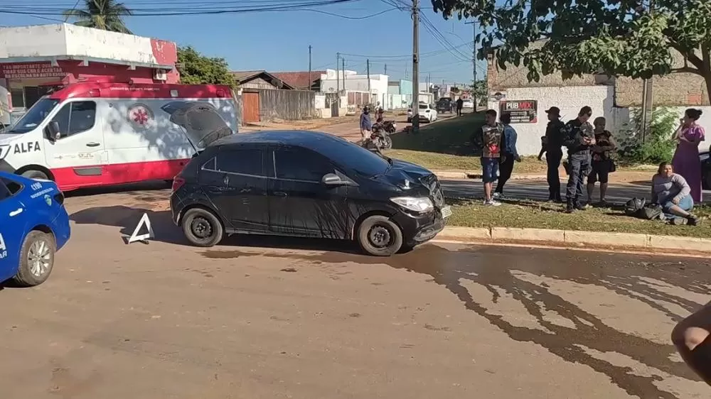 Na manhã desta quarta-feira (24), uma grave colisão entre um carro e uma motocicleta deixou uma mulher ferida em Ji-Paraná, Rondônia. O acidente ocorreu no cruzamento da Rua 31 de Março com a Avenida Menezes Filho, um ponto já conhecido por frequentes registros de acidentes.