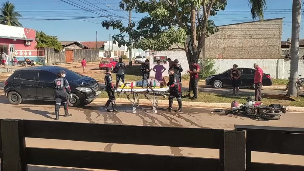 O impacto envolveu um Chevrolet Onix e uma Yamaha Factor, quando a motociclista foi atingida lateralmente enquanto atravessava a via. Com a força da colisão, ela foi lançada ao solo e sofreu uma fratura exposta na perna esquerda, exigindo atendimento médico de urgência.