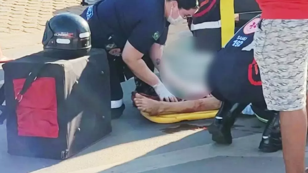 O condutor da motocicleta também sofreu ferimentos e recebeu atendimento médico de urgência. Além disso, a motocicleta foi apreendida no local após constatação de placa adulterada e licenciamento atrasado, agravando ainda mais a situação.