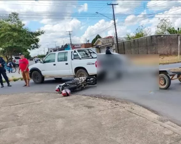 Ji-Paraná – Uma colisão assustadora foi registrada na manhã desta terça-feira (19) no cruzamento da T-14 com a Rua São Paulo, ao lado da Escola Aluízio Ferreira, no segundo distrito de Ji-Paraná. A vítima, uma mulher que pilotava uma Honda Biz, foi arremessada ao solo após o impacto com uma caminhonete Chevrolet S10 com carretinha.