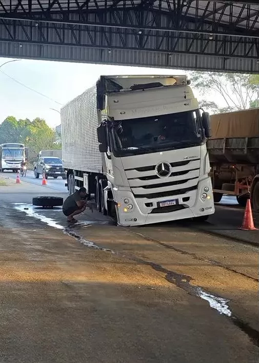 Segundo relatos do condutor, tudo começou com um forte cheiro de queimado vindo da parte frontal da carreta. Logo em seguida, um estrondo metálico indicou que algo estava errado. Foi então que a roda dianteira se desprendeu do eixo, obrigando o motorista a realizar uma parada de emergência.