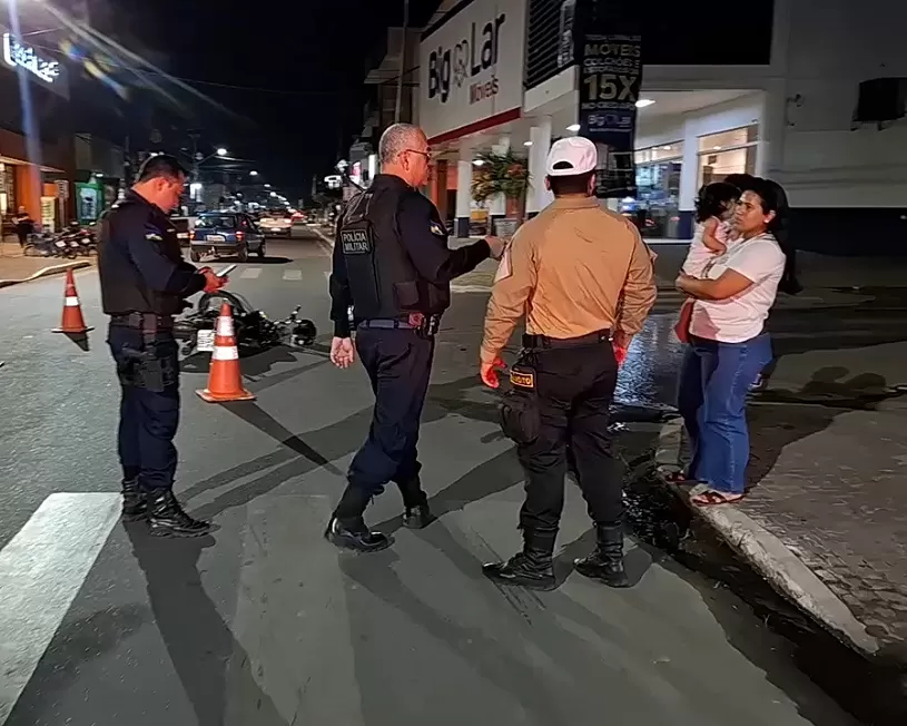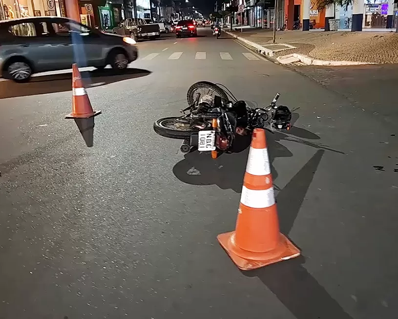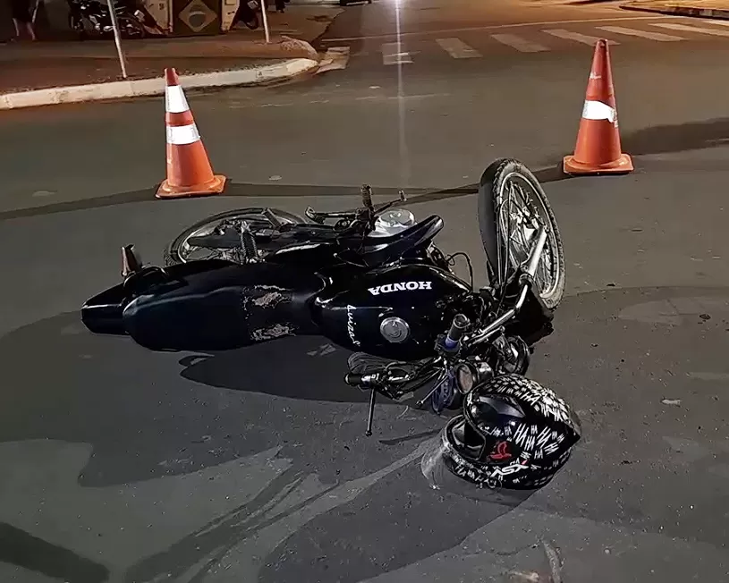 Ji-Paraná (RO) — Um acidente impressionante registrado na noite de sexta-feira, 12 de setembro, deixou um motociclista ferido após colidir violentamente contra uma caminhonete Mitsubishi Triton, no cruzamento da Avenida Brasil com T-7, no bairro Nova Brasília.