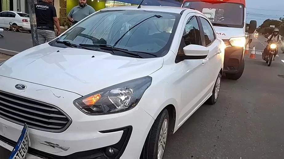 Segundo testemunhas que presenciaram o choque, a condutora de um Ford Ka seguia pela via quando, ao se aproximar do semáforo, atingiu violentamente uma motocicleta Honda Titan que cruzava o local. O impacto foi tão forte que os ocupantes da moto, identificados como Isaias e Lucineide, foram arremessados com violência ao chão.