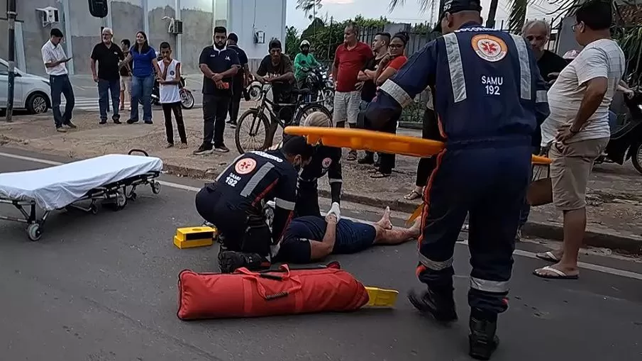 Ciclista Atropelado Ciclista fica ferido após ser atingido por motociclista ao tentar cruzar avenida em Ji-Paraná