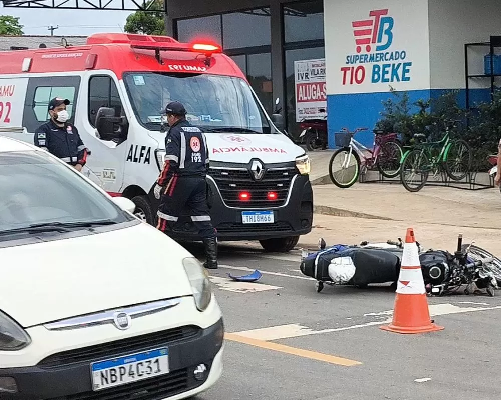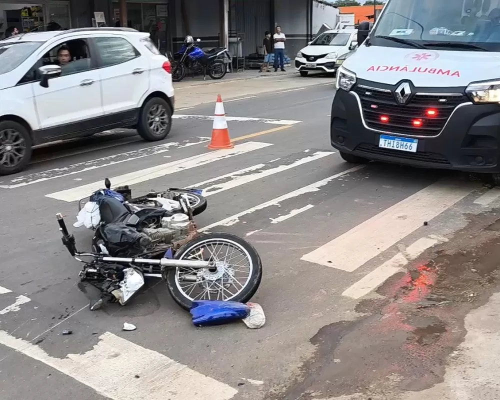 Motocicleta e carro colidem em cruzamento movimentado próximo ao Supermercado Tio Beke; impacto mobiliza populares e socorristas. Clique aqui e participe do nosso Grupo no WhatsApp, e receba atualizações exclusivas e em tempo real sobre as principais notícias de Ji-Paraná e região.
