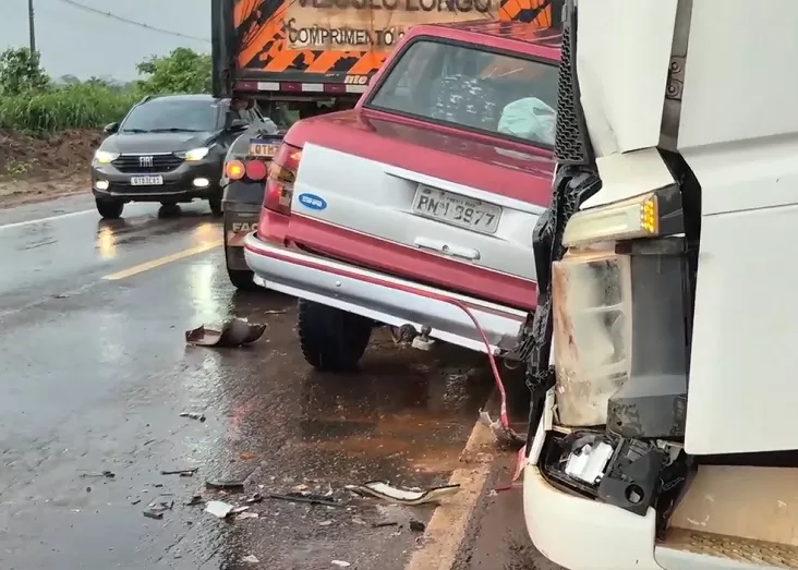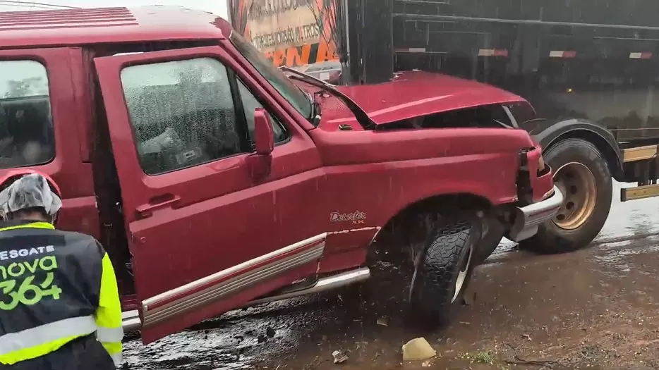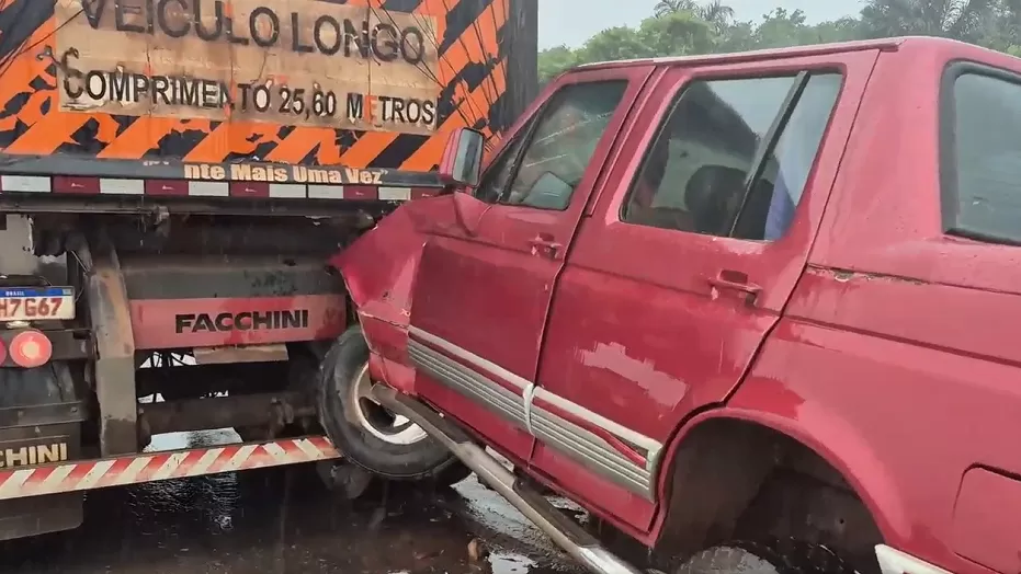 Colisão Frontal Colisão Violenta na BR-364 Deixa Motorista Gravemente Ferido Após Carro Aquaplanar na Pista