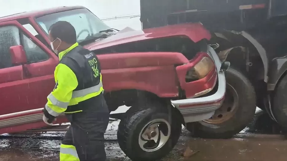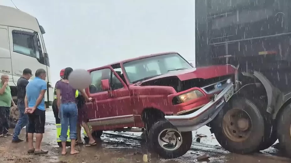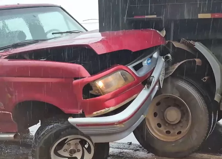 Caminhonete é Atingida por Trás e Empurrada Contra Outra Carreta