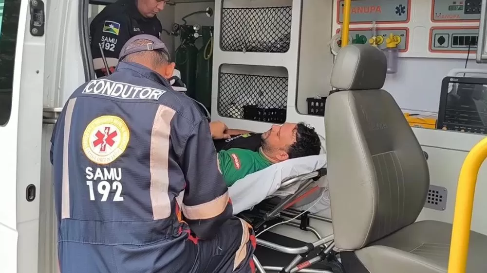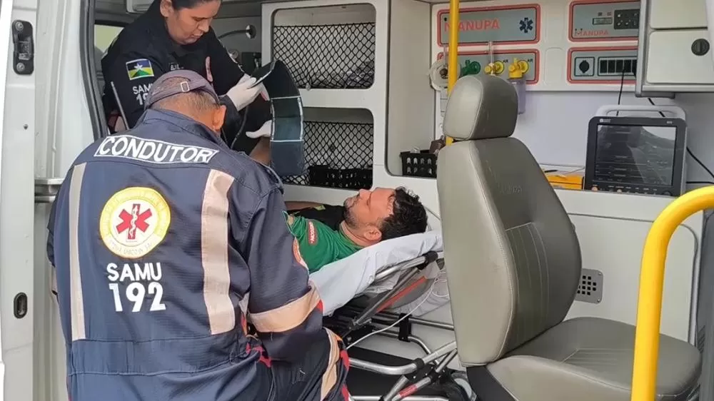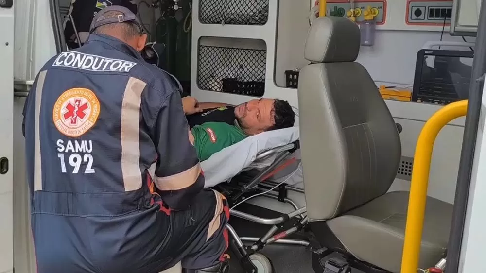 O SAMU foi acionado rapidamente para o endereço e prestou atendimento à vítima, identificada como Geilson Lemos. Ele foi encaminhado ao Hospital Municipal, onde passa por exames para avaliar a possibilidade de fratura.