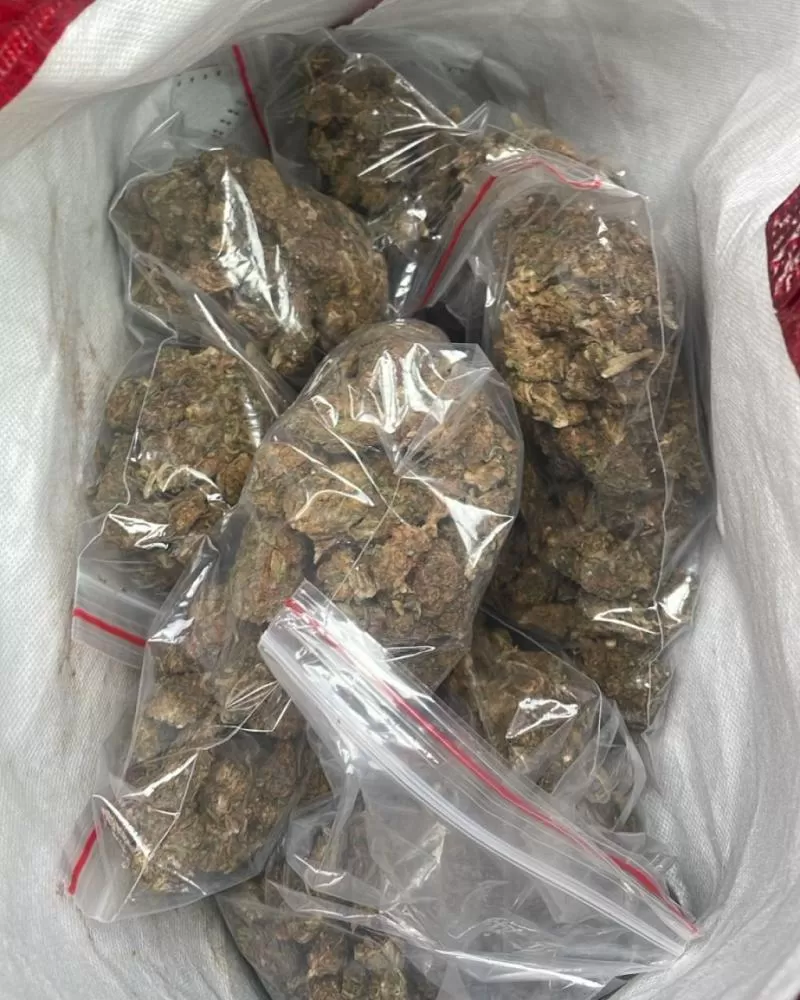 Na residência, os militares identificaram a mulher, que negou conhecer o fugitivo. Questionada sobre drogas, ela dirigiu-se à cozinha e retirou de uma gaveta uma caixa contendo cinco embalagens de substância semelhante à maconha, semelhantes às que caíram durante a fuga.