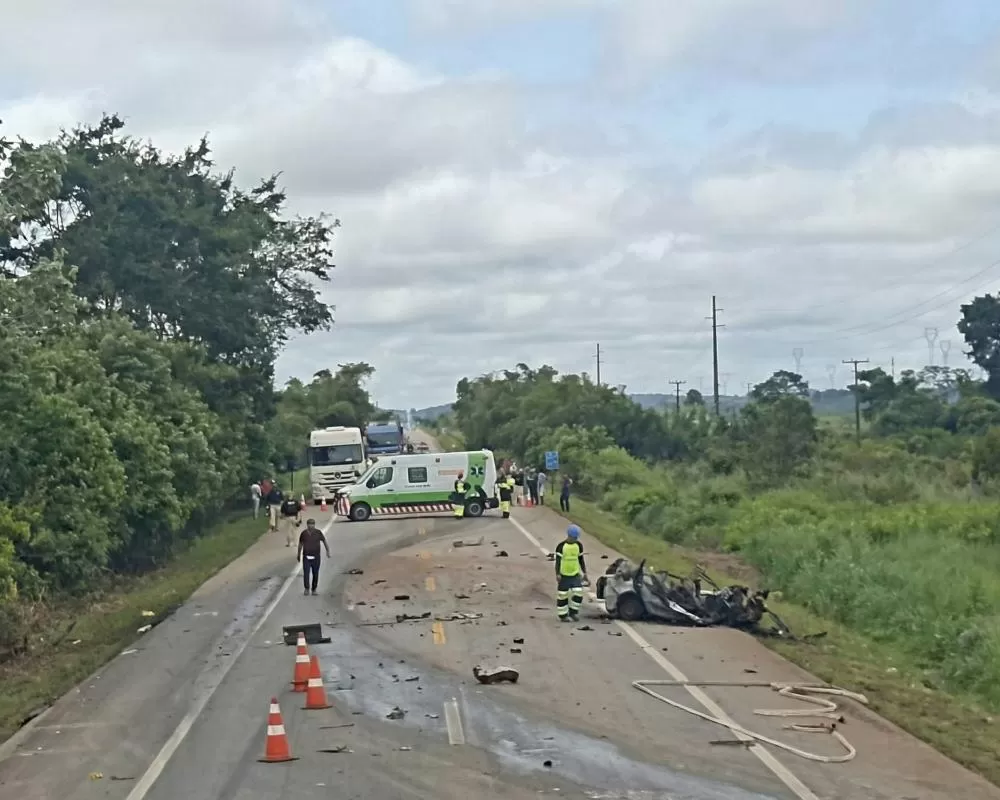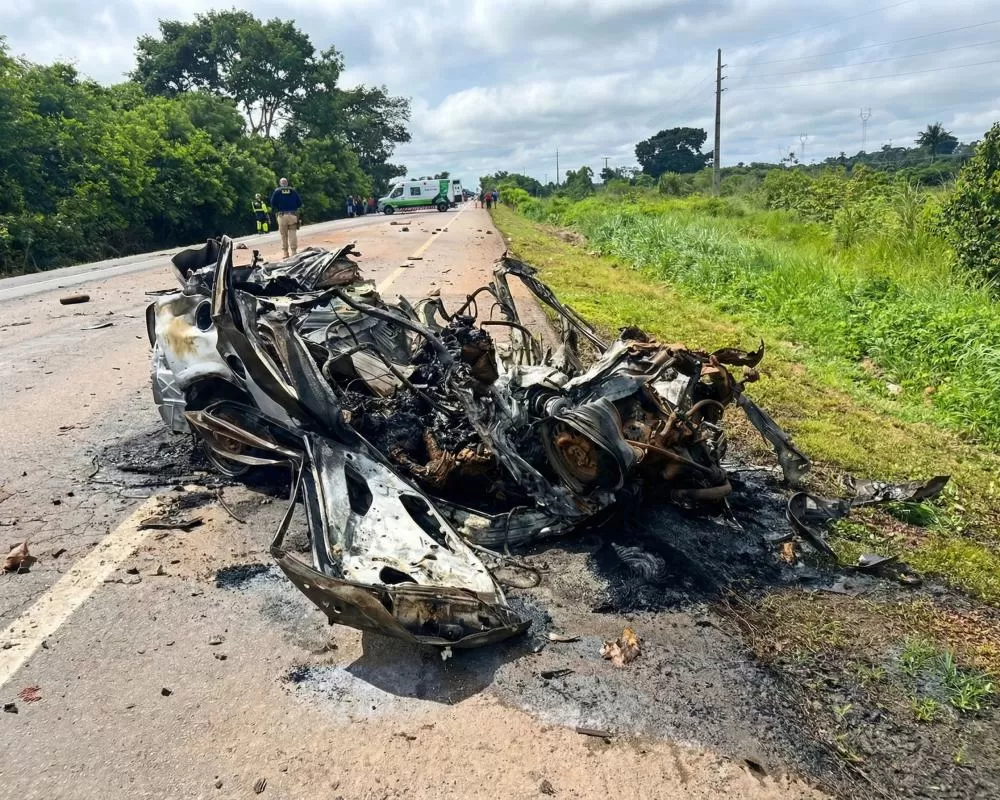 De acordo com informações confirmadas pela Polícia Rodoviária Federal (PRF), após a colisão com o caminhão boiadeiro, o carro capotou e foi rapidamente tomado pelas chamas.