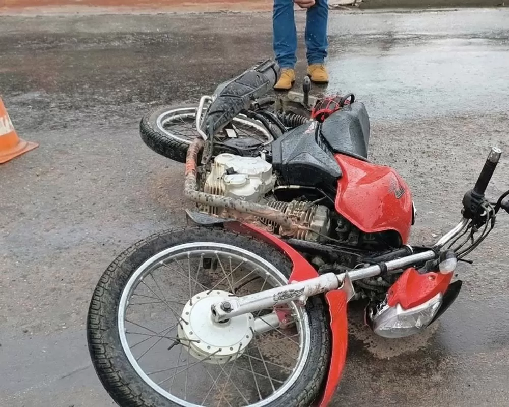 Um acidente de trânsito registrado no início da tarde desta quarta-feira (11 de fevereiro de 2026) deixou um motociclista com fratura na perna direita na L-94, em frente ao posto de combustível que dá acesso à Avenida do Parque Brasil, em Ji-Paraná (RO).