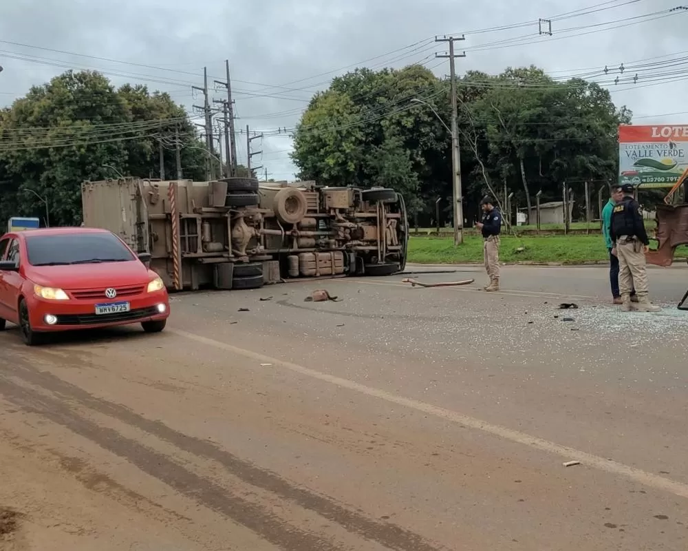 De acordo com as imagens, um dos caminhões avança ao sair da Rua Vitória Régia para acessar a Avenida Transcontinental. Durante a manobra, o veículo acaba sendo atingido por outro caminhão que trafegava pela via principal.