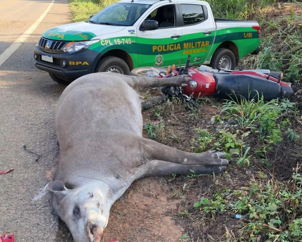 Rondônia BR-435 Vídeo: Motociclista colide com anta na BR-435, sobrevive ao impacto e acaba transferido para hospital Municipal
