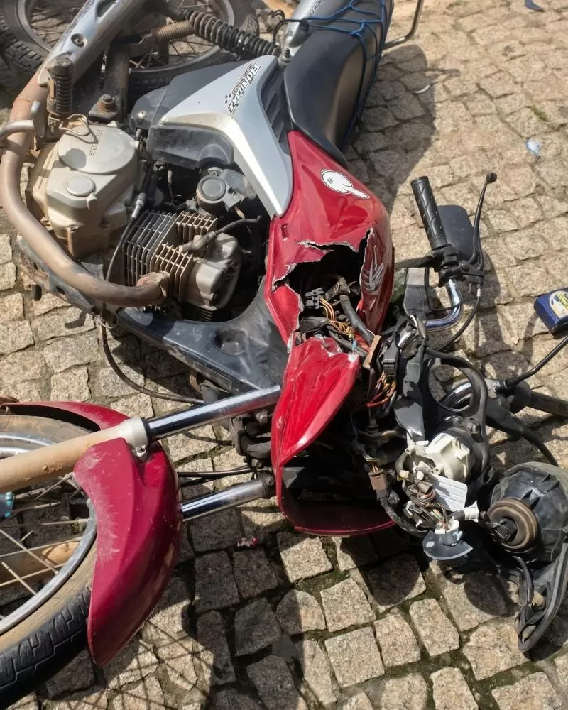 Com a força do impacto, motociclista e pedestre foram arremessados ao solo. O idoso apresentou suspeita de fraturas no braço e na perna, enquanto o condutor da moto relatava fortes dores, tremores e indícios de fraturas na região das costelas.