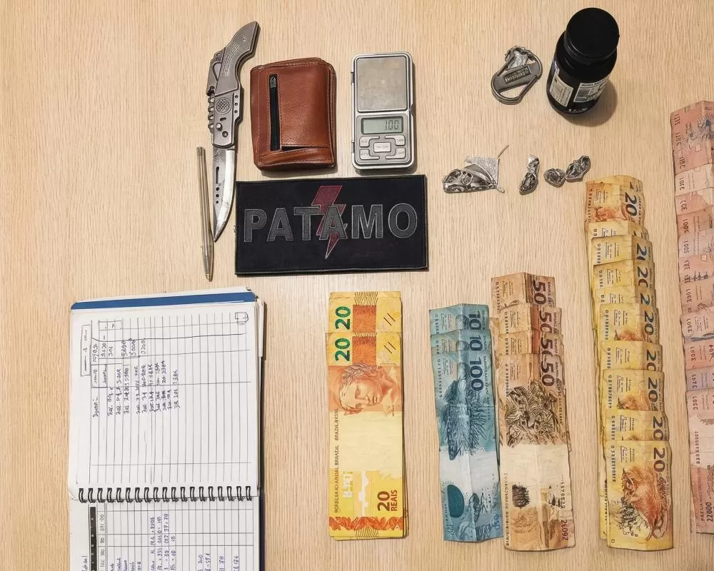 Já o homem tentou se desfazer de um objeto durante a ação policial, o que levantou ainda mais suspeitas. Dentro da residência, os militares localizaram porções de maconha, uma balança de precisão e cadernos com anotações típicas do tráfico, além de mais de R$ 1,1 mil em dinheiro trocado escondido em uma meia.