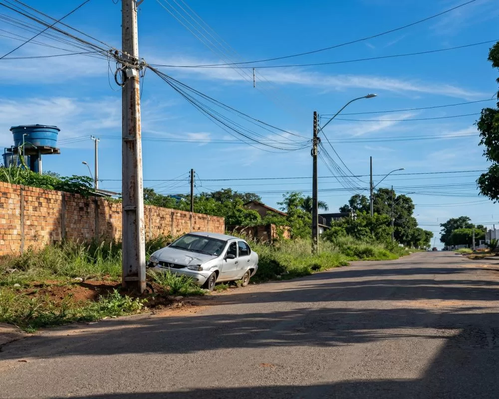 Bateram e Fugiram Acidente em Ji-Paraná deixa bairro sem energia após carro destruir poste — Ocupantes fugiram do local e polícia investiga o caso
