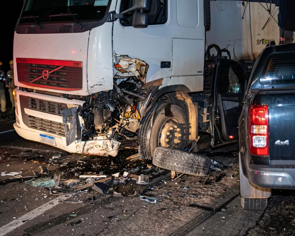 Colisão Violenta Colisão violenta entre carreta e caminhonete na RO-383 e deixa caminhonete praticamente destruída