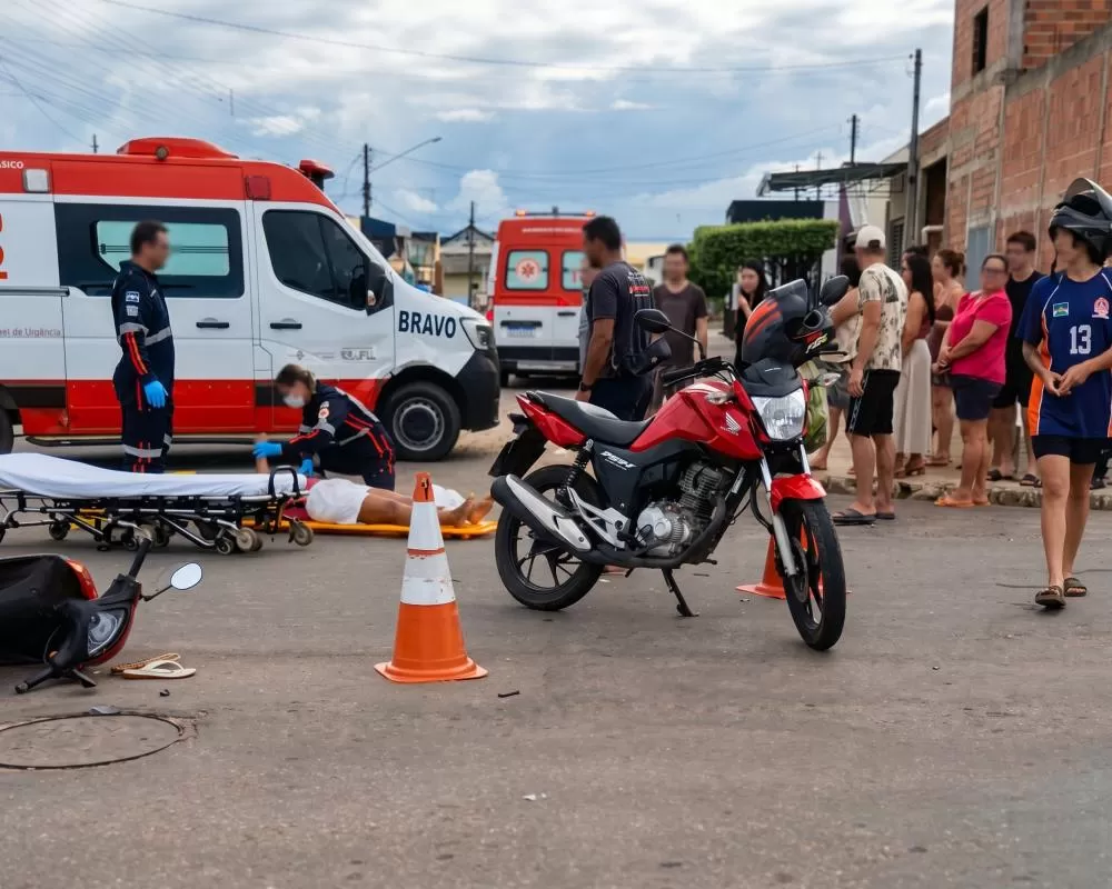 Um acidente de trânsito de forte impacto foi registrado em Ji-Paraná (RO), no cruzamento da Rua T-20 com a Rua Teresina, no bairro Nova Brasília. A colisão envolveu um Chevrolet Cruze e uma motocicleta, deixando pessoas feridas e gerando grande repercussão.